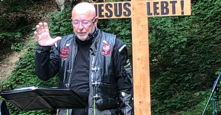 Zum eilig einberufenen Vorstandstreffen war dann allerdings der Superintendent nicht anwesend, lediglich der Landesjugendpfarrer, die drei CMS-Mitglieder und Roberto waren da. Ich stellte mich vor, erzählte aus meinem Leben und vom 30.12.2018, beantwortete alle gestellten Fragen und durfte wieder gehen. Roberto teilte mir noch kurz mit, dass er mich noch am gleichen Abend anrufen wird, um mir das Ergebnis mitzuteilen. So gegen 22:30 Uhr klingelte dann mein Telefon und Roberto sagte mir sehr freudig, dass ich einstimmig angenommen bin. Auf meine Frage, welche Ausbildung ich noch durchlaufen und vorweisen muss, war seine Antwort: „Du bist ohne Auflagen angenommen. Der Landesjugendpfarrer hat sofort, nachdem du den Raum verlassen hattest, sein uneingeschränktes Ja zu deiner Einstellung geäußert.“ Roberto erzählte mir dann auf meine Frage nach dem nicht anwesenden Superintendenten ebenfalls, dass dieser bereits vorab, in seiner Entschuldigungsmail sein uneingeschränktes Ja zu meiner Einstellung abgegeben hatte. Das war für mich die eindeutige Bestätigung meiner Berufung und so begann ich bereits am 01.01.2020 für zwei Monate eine ehrenamtliche Tätigkeit und wurde am 01.03.2020 als Biker-Pastor beim CMS e.V. fest angestellt. Ja es stimmt, ich wollte keinesfalls predigen und genau das war jetzt ein wichtiger Teil meiner Tätigkeit. Da habe ich den Ball meinem Herrn Jesus Christus zugeworfen und gebetet. „Du hast mich in diese Aufgabe berufen, und nun verlasse ich mich darauf, dass du mir alles gibst und schenkst, was ich für diese Aufgabe brauche.“ Und mein Herr hat bis heute Wort gehalten, mich mit allem regelrecht überschüttet, was ich gebraucht habe und ich konnte viele Wunder erleben.